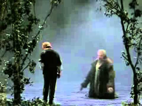 先來看看這段出自1981年的拜魯特音樂節(Bayreuther Festspiele)製作之《齊格菲》片段,劇情說到,「齊格菲」受收養他的矮人「迷魅」(Mime)煽動,決定挑戰已化身成巨蛇的巨人「法夫納」(Fafner)。